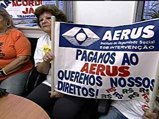 Um grupo de ex-funcionários da Varig e da Transbrasil está acampado na sede do Aerus, o fundo de pensão das companhias aéreas, no Rio de Janeiro. Eles protestam contra a redução das aposentadorias.