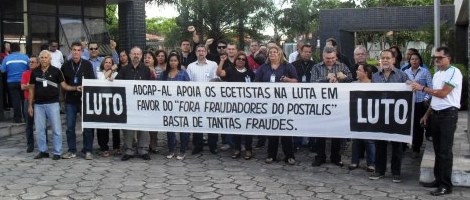 Participaram do movimento em Alagoas em torno de 50 pessoas que manifestaram insatisfação a respeito da situação de desmancho pelo que vem passando o Fundo de Pensão do Postalis. Os manifestantes pediram que a ADCAP Nacional continue acompanhando e denunciando aos órgãos fiscalizadores as irregularidades que estão sendo praticadas pela Direção do Postalis. São favoráveis que seja destituída toda a Direção e seus Conselhos e que uma nova diretoria seja eleita pelos próprios participantes do POSTALIS, a exemplo do que aconteceu com a PREVI e FUNCEF. A Faixa posta no Ato demonstra o descontentamento de todos. “Fora Diretoria e seus Conselheiros”.