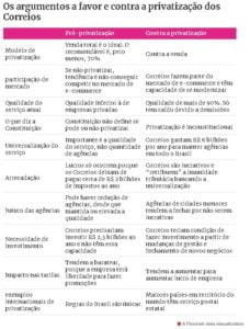 Favorável à mudança, a secretária do Programa de Parcerias de Investimentos do governo, Martha Seillier, afirma que a privatização é necessária para modernizar e dar competitividade à empresa, em meio à diminuição do envio de cartas e telegramas e ao aumento do e-commerce.