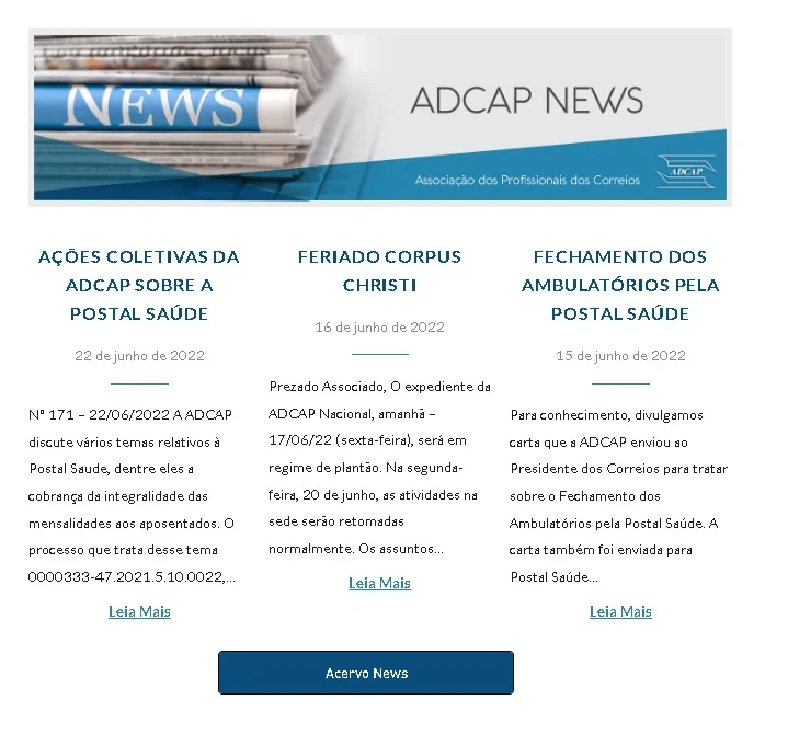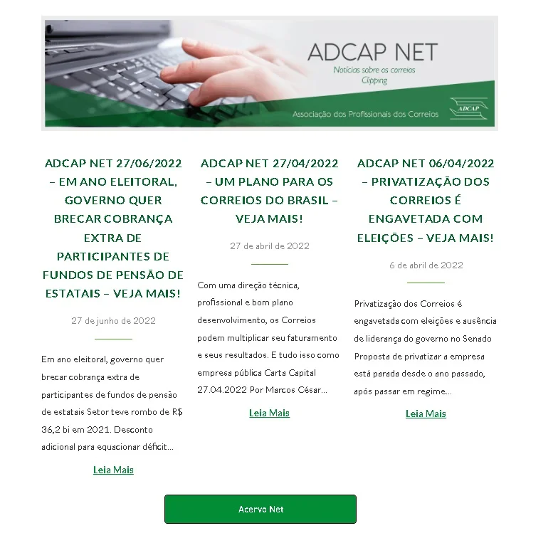 ADCAP Net com as principais notícias da imprensa sobre os Correios e a Associação.