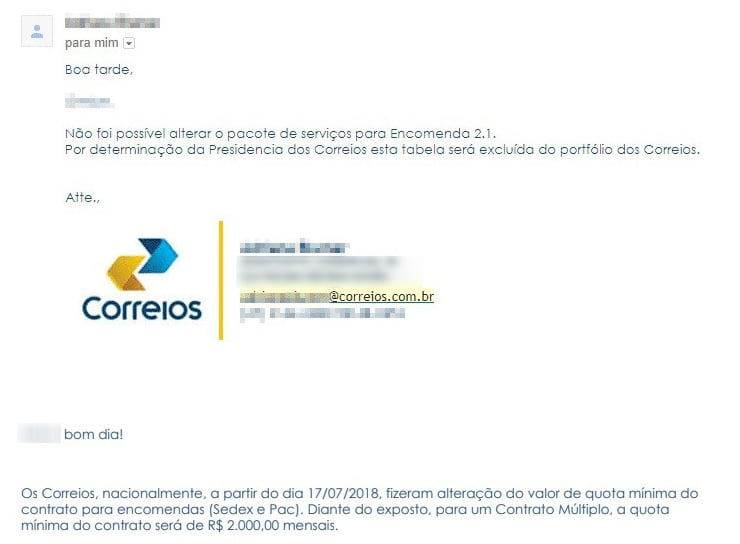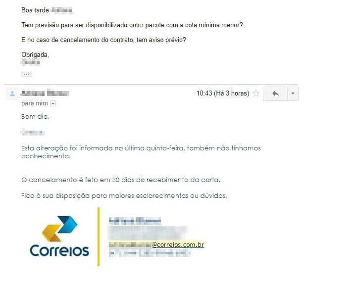 Segundo os comunicados feitos pelos gerentes comerciais, os pacotes mais baratos terão exigência de R$ 2 mil por mês (“Encomenda 2” ou “Ecommerce 1”), além de envio de pelo menos 66 encomendas a cada 30 dias. Isso significa um aumento de 1900% no valor dos contratos.