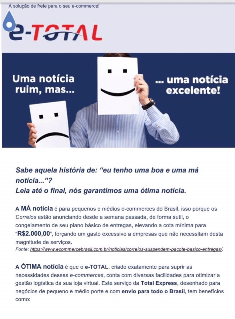 O discurso contradiz os comunicados enviados por gerentes comerciais de diversos Estados e aos quais o E-Commerce Brasil teve acesso. Em um deles, o representante chega a dizer que a presidência da estatal decidiu excluir a tabela mais básica do seu portfólio (veja nas imagens abaixo).