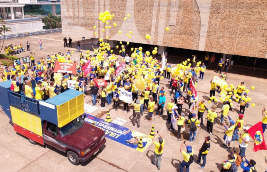 Ao meio-dia (12h), foi realizado grande ato no edifício sede dos Correios, para manifestar o orgulho de ser Correios e a unidade dos empregados e aposentados nesse momento crucial da vida da empresa. Em representação a todos os trabalhadores dos Correios, foi formada uma grande onda de balões amarelos — um gesto simbólico que expressa união, reconhecimento e a força de cada profissional que faz a nossa missão acontecer todos os dias.