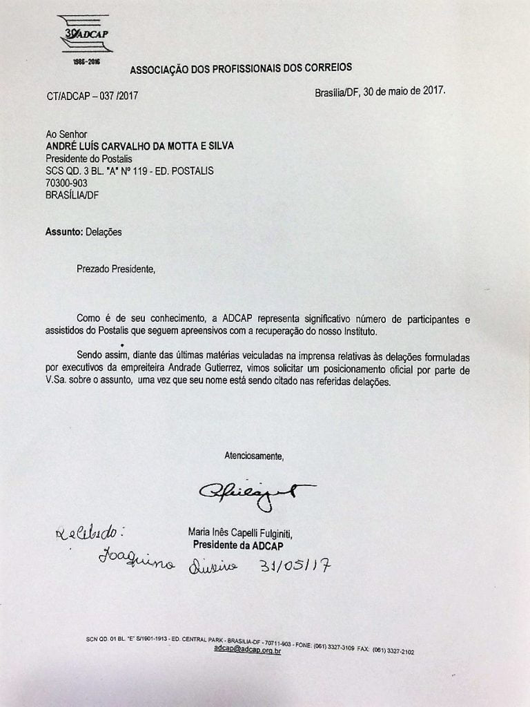 Para conhecimento, publicamos, a seguir, carta enviada ao Presidente do Postalis, Senhor André Luiz Carvalho da Motta e Silva.