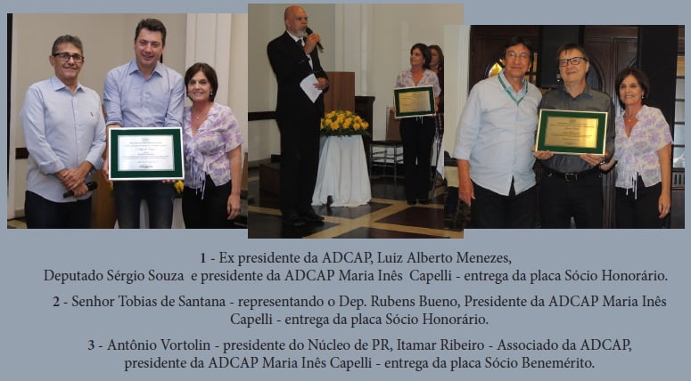 Realizou-se em Curitiba/PR, no último dia 14/04/18, a Cerimônia de Entrega de Títulos de Sócio Honorário concedido a pessoas de reconhecido mérito científico e técnico que tenham prestado relevantes serviços à ADCAP ou às causas por ela encampadas e a entrega de título de Sócio Benemérito, concedida à associados merecedores dessa distinção, pelos relevantes serviços prestados à ADCAP ou às causas por ela encampadas.