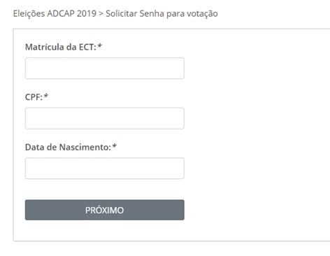 Conforme já divulgado por esta Junta Eleitora no informativo do dia 23/04/2019, destacamos e orientamos os procedimentos para geração da senha para votação a serem realizados no site https://sis.adcap.org.br/eleicoes/eleicoes-2019