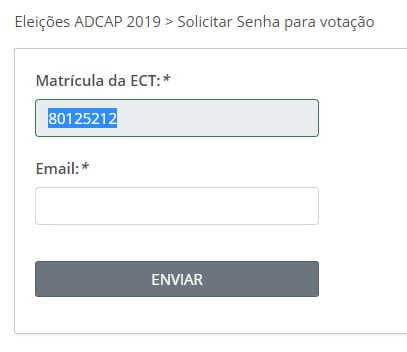 3 – Informar o endereço de e-mail desejado para receber a senha para votação