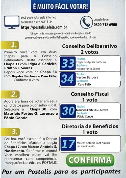 De posse de sua senha, acesse o site https://postalis.eleja.com.br e registre seus votos nas chapas e candidatos apoiados pela ADCAP, conforme as instruções abaixo.