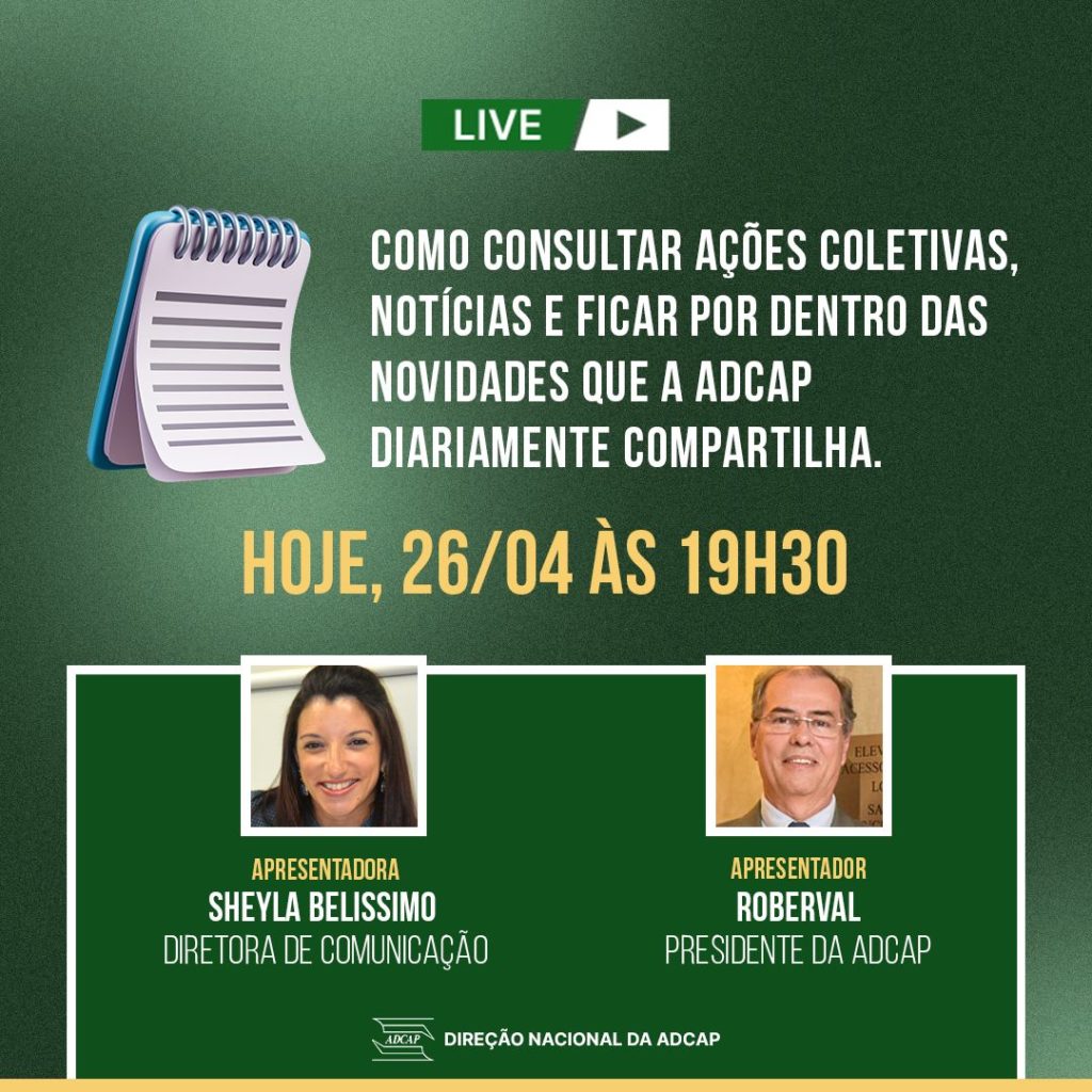 HOJE, 26/04, às 19h30: LIVE – Como consultar as ações judiciais, documentos e informações da ADCAP
