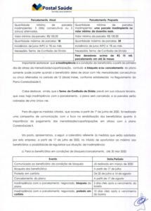 Como a eventual exclusão do plano de saúde pode ser muito grave para os que se encontram em situação de inadimplência e que passarão a ficar sem essa assistência, sugerimos que esses procurem a Postal Saúde, considerando as informações da carta e do cronograma ali previsto, para avaliar a possibilidade de negociar a dívida e, assim, poder continuar com plano de saúde, inclusive para os respectivos dependentes.