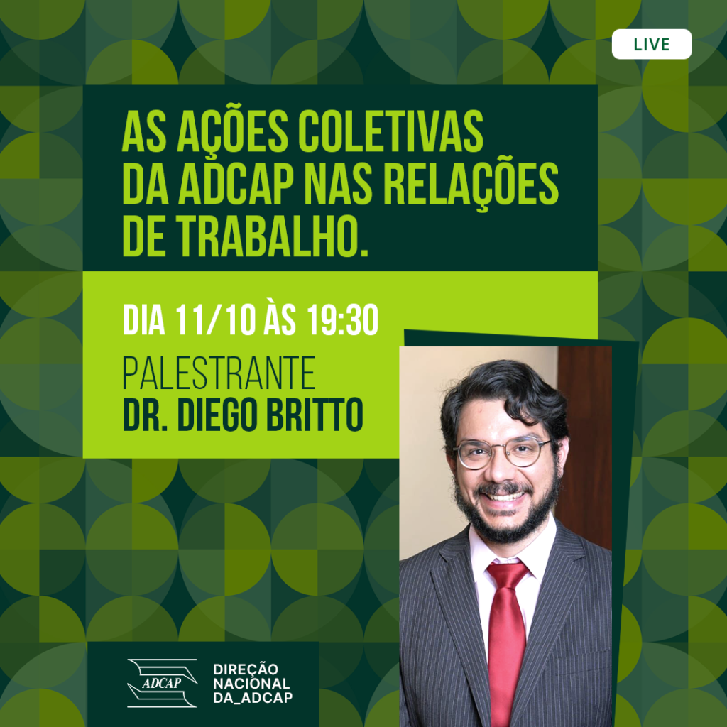 Mais uma live da ADCAP Nacional, agora com o palestrante Dr. Diego Britto, para comentar sobre as Ações Coletivas nas Relações de Trabalho. Contamos com sua participação.