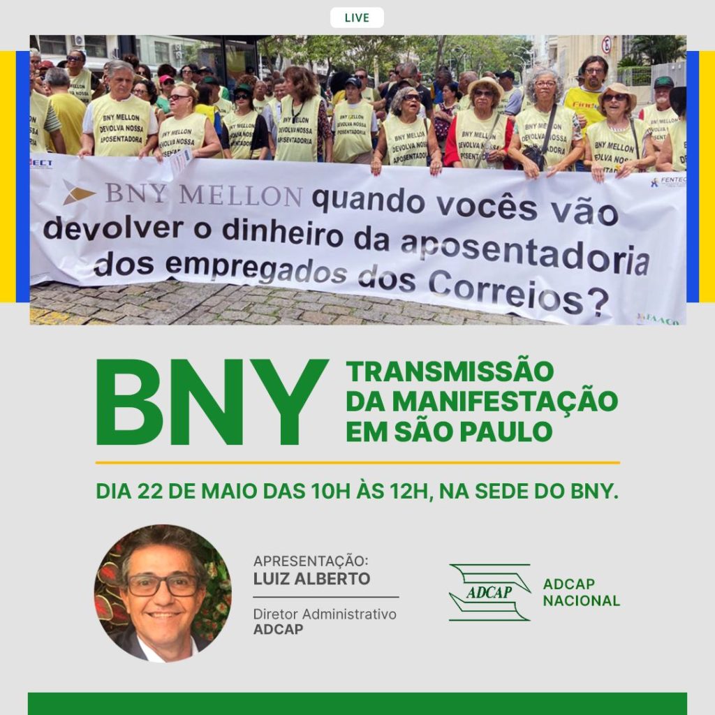 Excepcionalmente, a próxima live da ADCAP ocorrerá, amanhã, 22/05/2024, às 10h com transmissão ao vivo, direto da manifestação contra o BNY MELLON, na cidade de São Paulo.