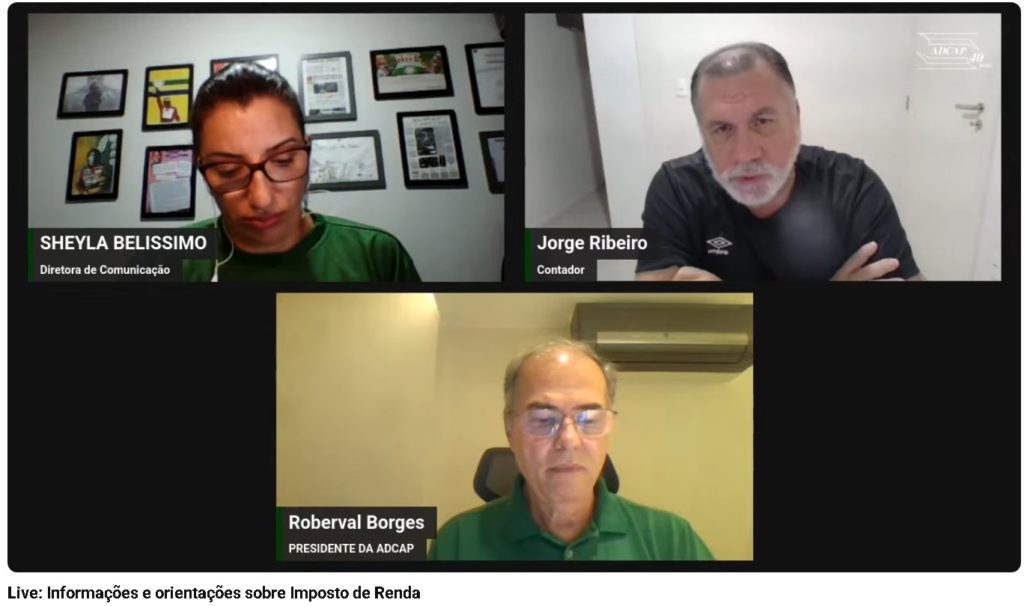 Como o convidado, participou da live: Jorge Ribeiro – Contador e Especialista no tema e ainda Roberval Borges – Presidente da ADCAP, Sheyla Belíssimo – Diretora de Comunicação da ADCAP.