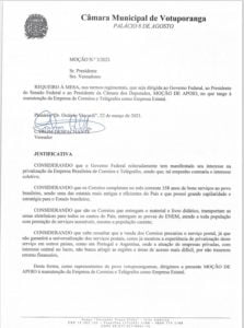 É mais um Câmara Municipal que se soma às centenas que já aprovaram moções semelhantes, atestando a importância do serviço postal público para o município.