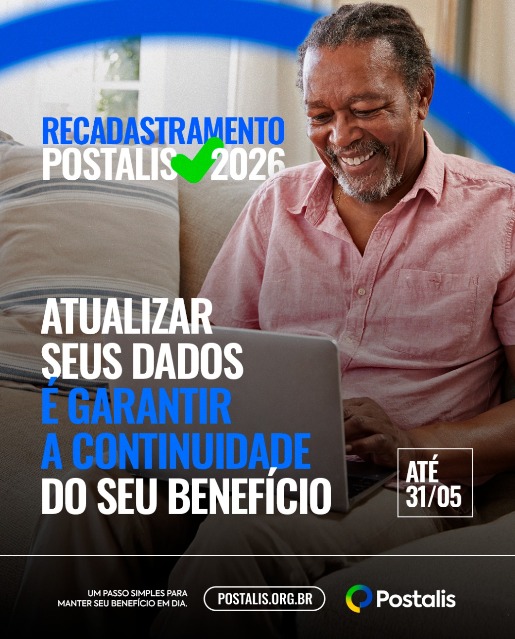 A participação é obrigatória. Quem não realizar o procedimento dentro do prazo terá o pagamento do benefício suspenso a partir da folha de julho de 2026. Todas as orientações, o passo a passo e os canais de atendimento estão disponíveis no site do Postalis (https://www.postalis.org.br/home)